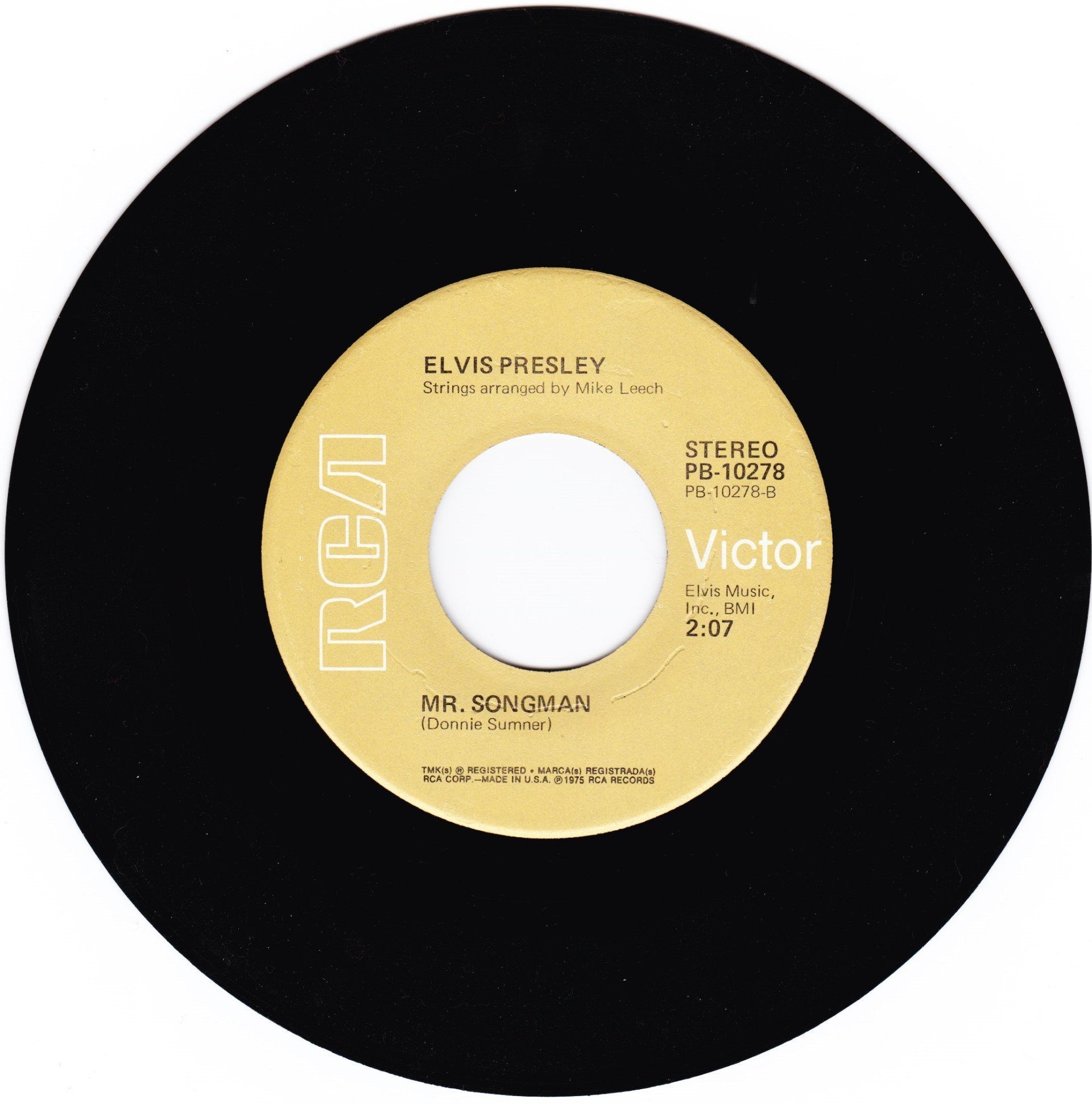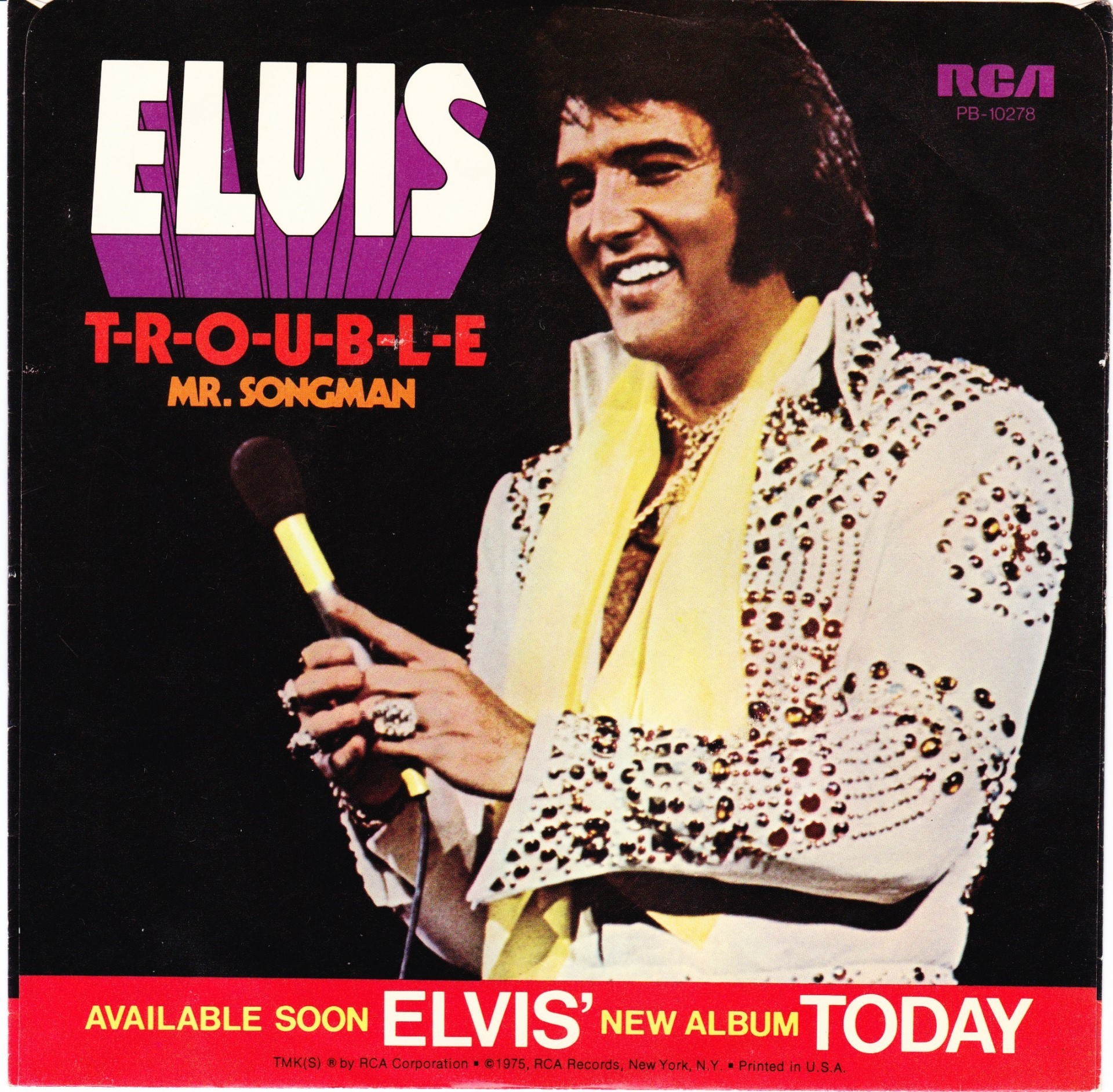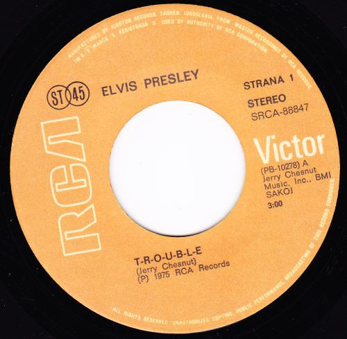 Music, Inc. Side A: Recorded March 10,1975 Different version : Elvis Presley - T-R-O-U-B-L-E / Mr. Songman is a SHELLY pressing. Rights Society: BMI |