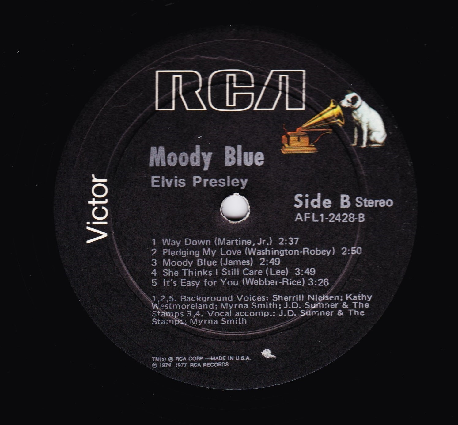 | Label: RCA Victor – PB-10998 Format: Vinyl, 7", 45 RPM, Single Country: Canada Released: 1977 Phonographic Copyright ℗ – RCA Records Similar to Way Down but the labels's layouts/disposition differ. Made in Canada by RCA Limited |