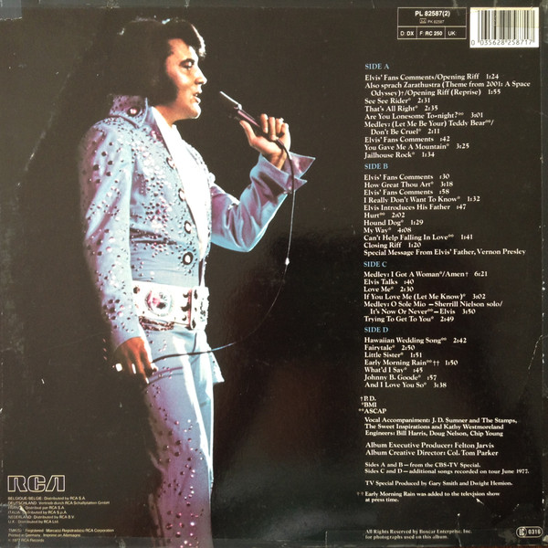 | Label: RCA – APL2-2587 Format: 2 x Vinyl, LP, Album, Reissue, Stereo Country: Belgium Released: 1977 Manufactured By – Inelco Belgium S.A. Released in a gatefold cover. Original Soundtrack Recording From The CBS-TV Special Plus Additional Songs Recorded On Tour June, 1977. Rights Society: SABAM |