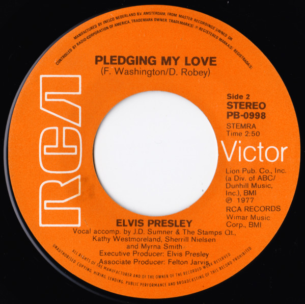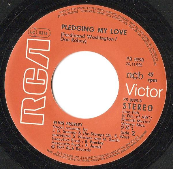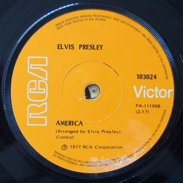 | Label: RCA Victor – 103024 Format: Vinyl, 7", 45 RPM, Single Country: Australia Released: 1977 Published By – Leeds Side A : From the "Elvis In Concert" Album APL2-2587 Publishers: Rights Society: BIEM |