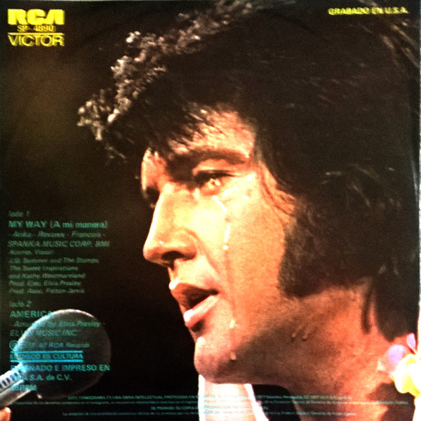 My Way (From Elvis In Concert 21/6/77) Brief History : My Way was recorded either June 19th or June 21st, 1977 at either Omaha or Rapid City live. America has a possible recording date in Las Vegas either December 1975 or 1976 live. Front Cover : Picture Sleeve. |