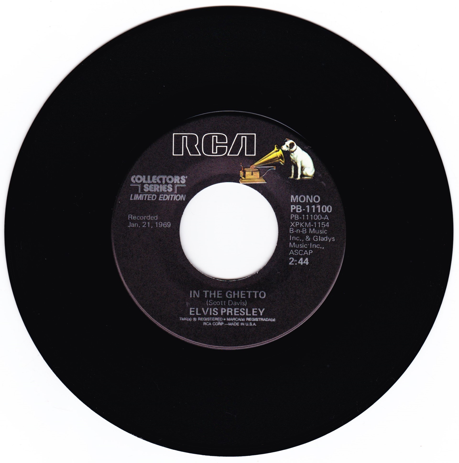 | Details : Reissue with new catalogue number Side A : In The Ghetto Side B : Any Day Now Front Cover : Picture Sleeve Rear Cover : Picture Sleeve Label : Black Pressing Plant : Indianapolis Matrix Number Side 1 : XP - KM 1154 - 35 A2 PB - 11100 - A (Machine Stamped) Matrix Number Side 2 : XP - KM 1274 - 35S A1 PB - 11100 - B (Machine Stamped) *NOTE* PB - 11100 |
