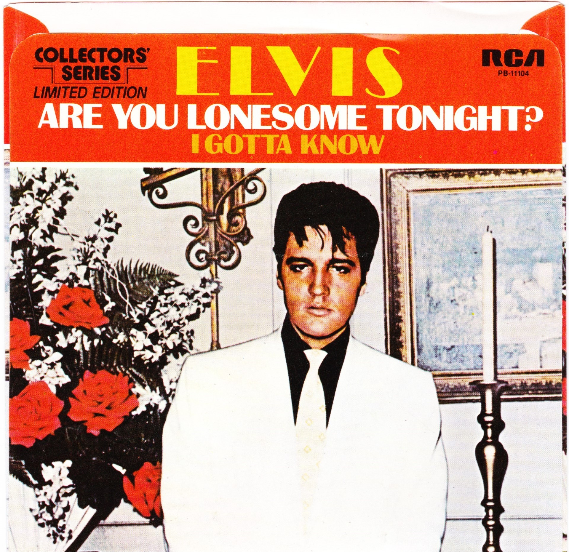 | Details : Reissue with new catalogue number Side A : Are You Lonesome Tonight Side B : I Gotta Know Front Cover : Picture Sleeve Rear Cover : Picture Sleeve Label : Black Pressing Plant : Indianapolis Matrix Number Side 1 : L2 - WW 0106 - 14 A4 PB - 11104 - A (Machine Stamped) Matrix Number Side 2 : L2 - WW 0104 - 10S A4 PB - 11104 - B (Machine Stamped) *NOTE* PB - 11104 |