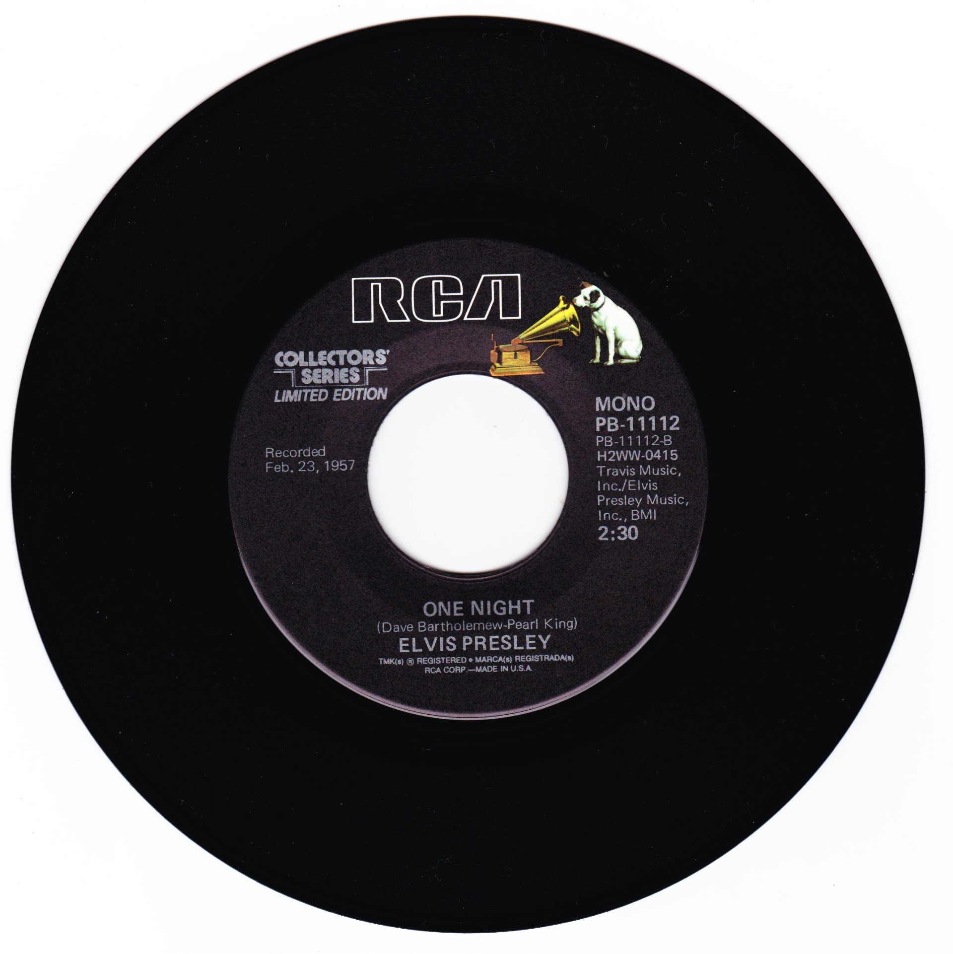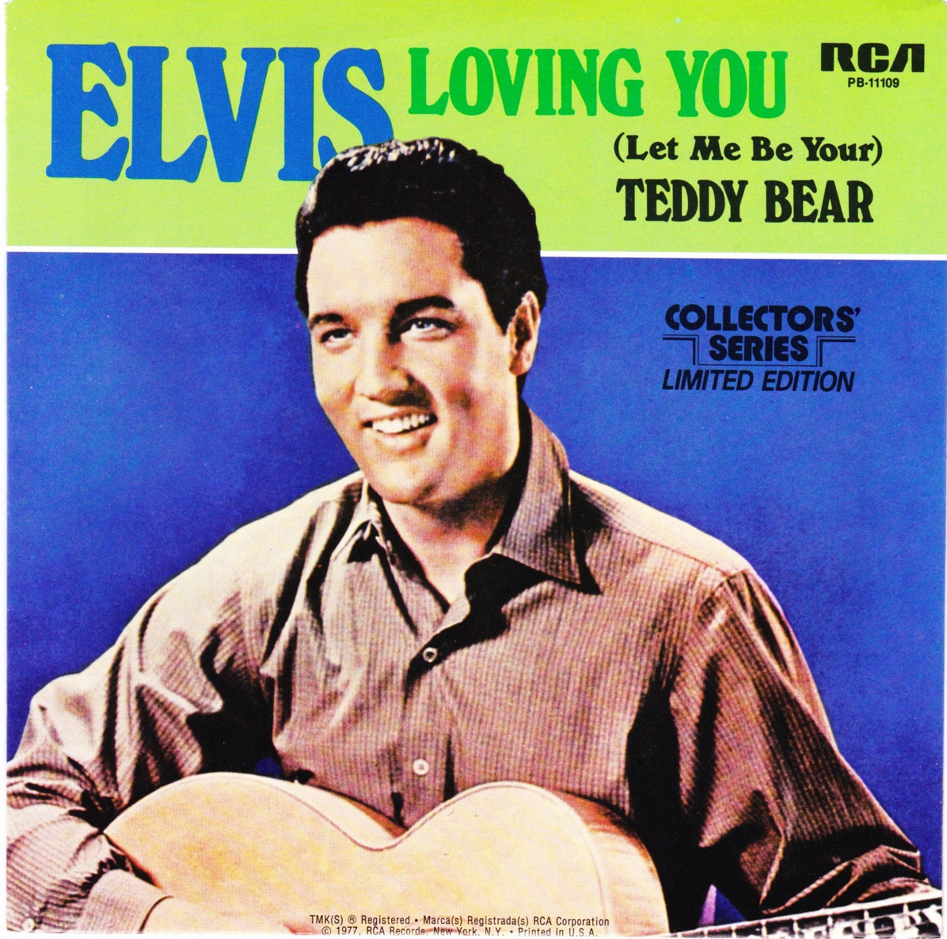 | Details : Reissue with new catalogue number Side A : Loving You Side B : (Let Me Be Your) Teddy Bear Front Cover : Picture Sleeve Rear Cover : Picture Sleeve Label : Black Pressing Plant : Indianapolis Matrix Number Side 1 : H2 - WW 0418 - 16 A6 PB - 11109 - A (Machine Stamped) Matrix Number Side 2 : H2 - WW 2193 - 14 A5 PB - 11109 - B (Machine Stamped) *NOTE* PB - 11109 |