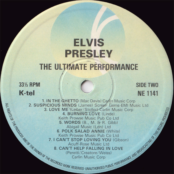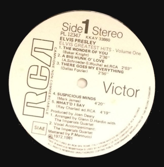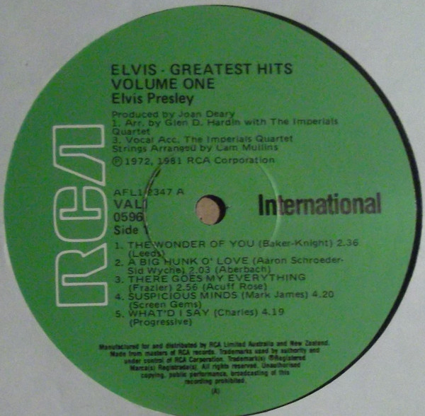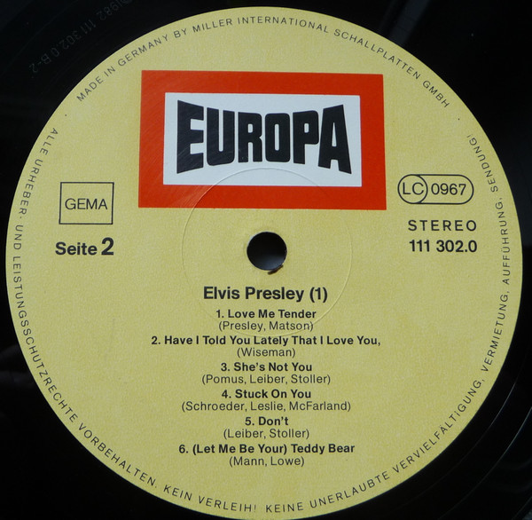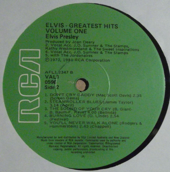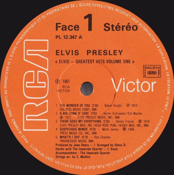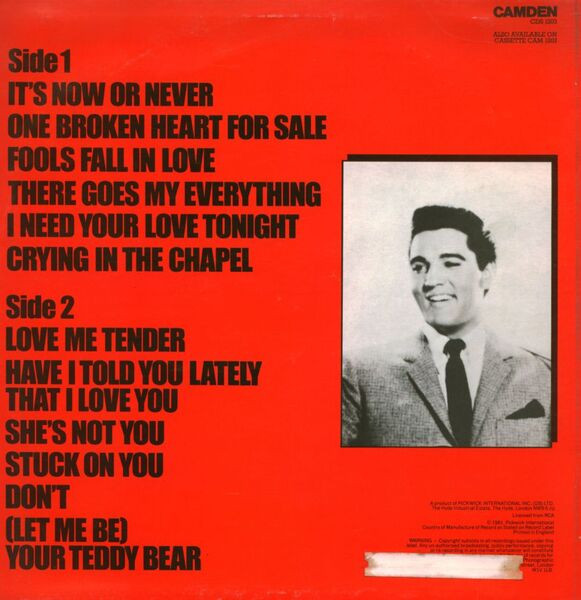 Front Cover : Photo of Elvis. Title top right. Catalogue number