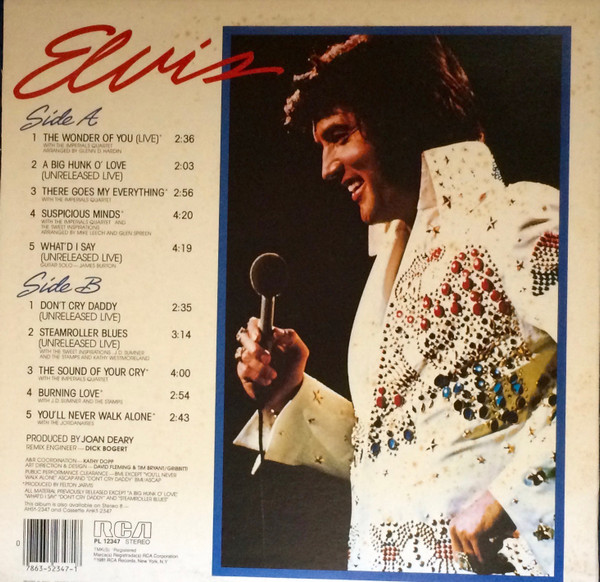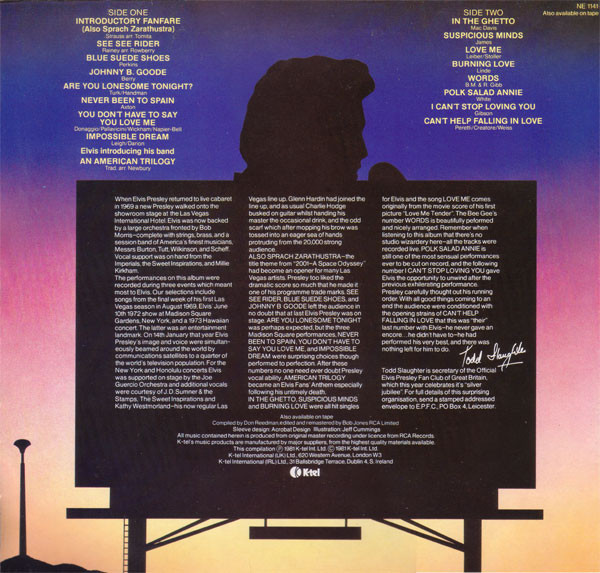 Rear Cover : Photo of Elvis. Catalogue number bottom right.