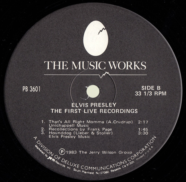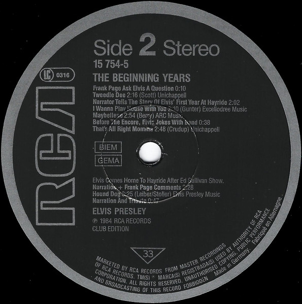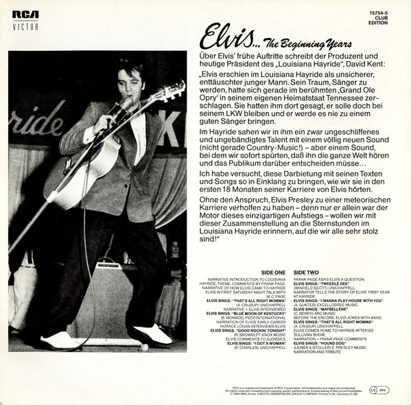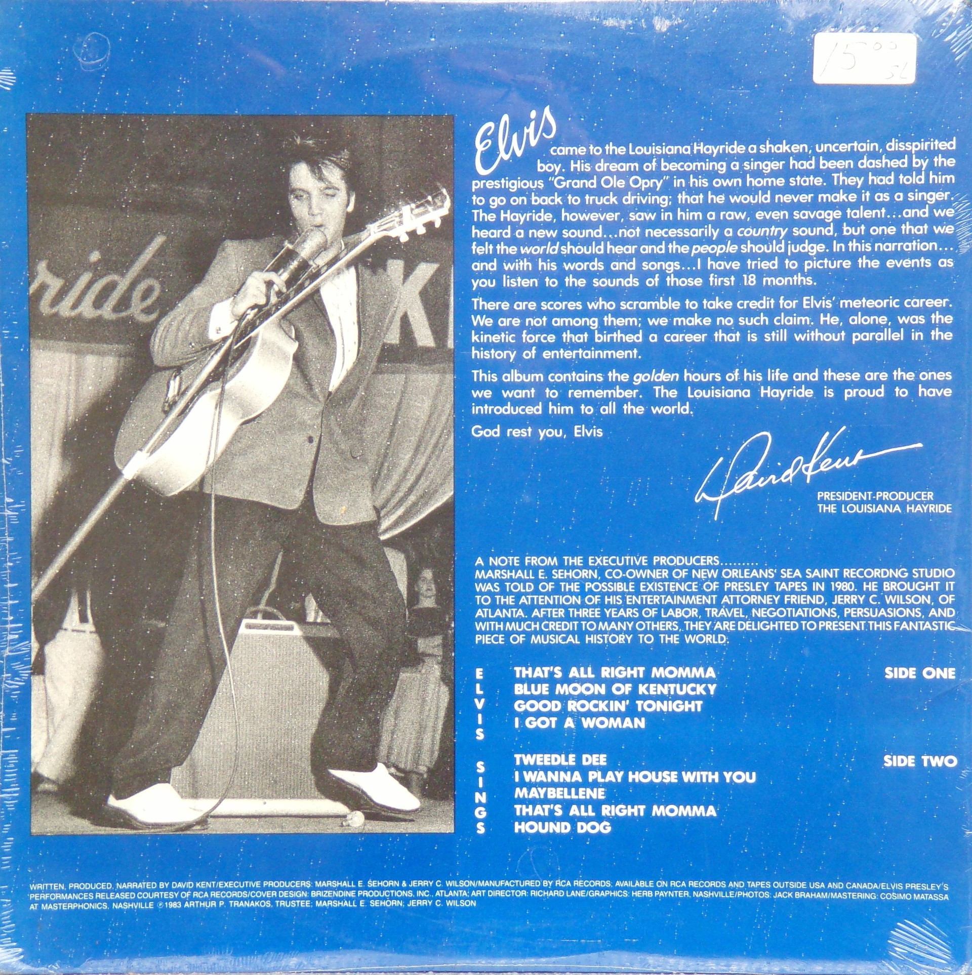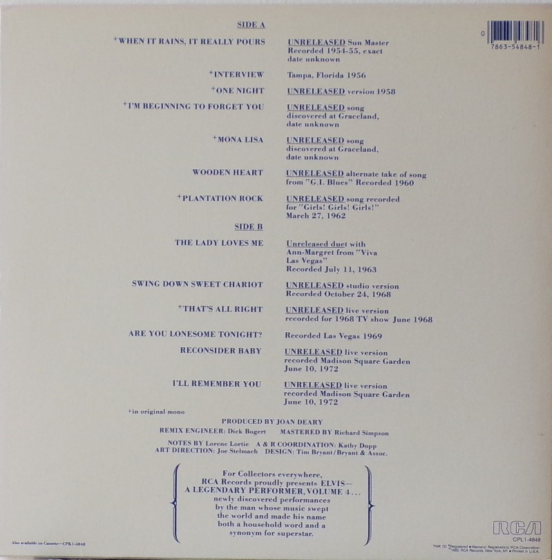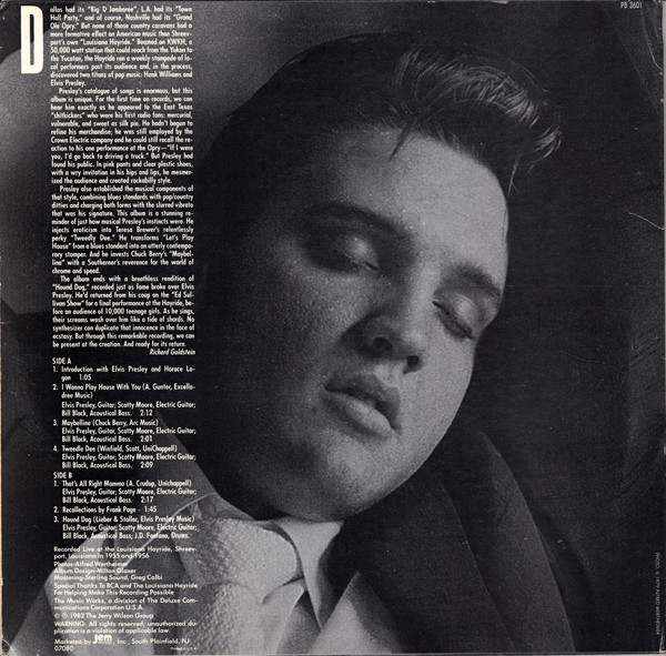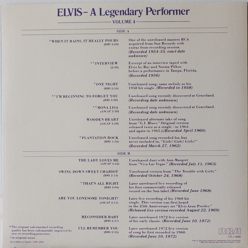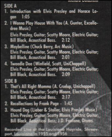 Rear Cover : Mock up photo of Elvis. Song titles across