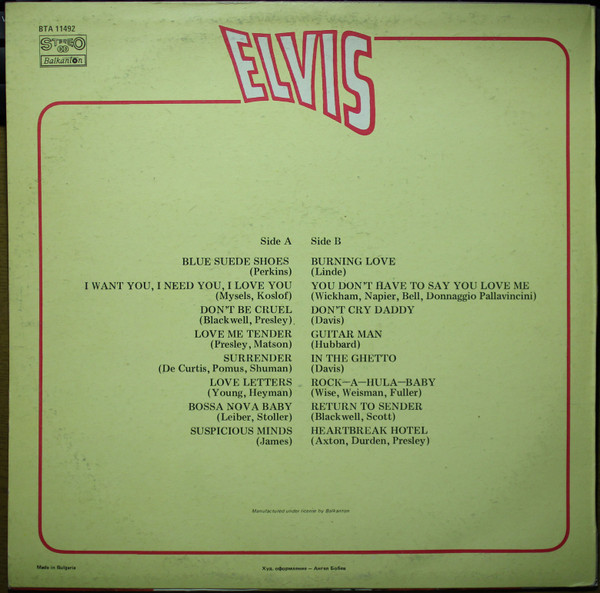 Elvis Label: Балкантон – ВТА 11492