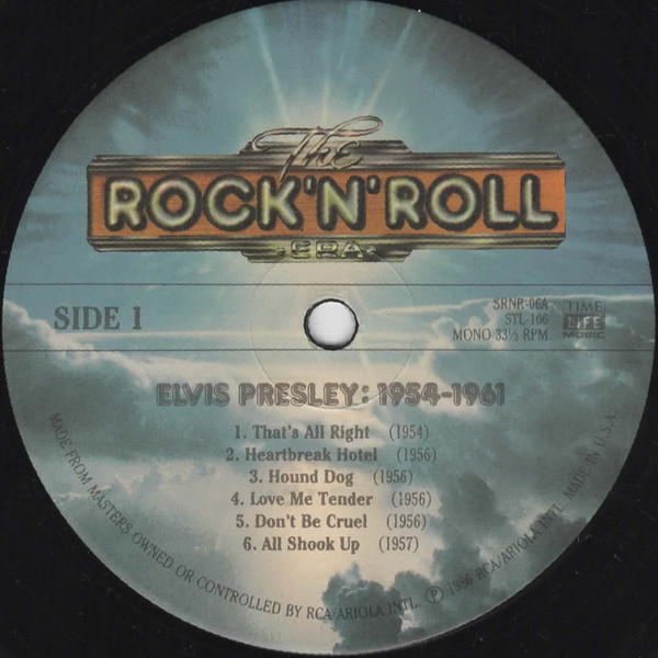 Label: Time Life Music – SRNR-06, Time Life Music – STL-106 Side One: Side Two: Side Three: Side Four: Licensed From – Sun Entertainment Corporation Art Direction – Don Sheldon Volume 6 of a 40 volume set, sold by subscription. Produced in cooperation with RCA/Ariola International. It's a 2-LP Boxed Set with Fold-Out Insert with Notes and Credits. Side 1, 2, and 3 are Mono. Side 4 is Stereo Front Cover : Photo of Elvis. Title across top. *NOTE* Released through Time Life. Made in U.S.A. bottom of each vinyl label. MONO 33 1/3 RPM Time Life Music centre of each vinyl label. Matrix / Runout (Label Side A): SRNR-06A |