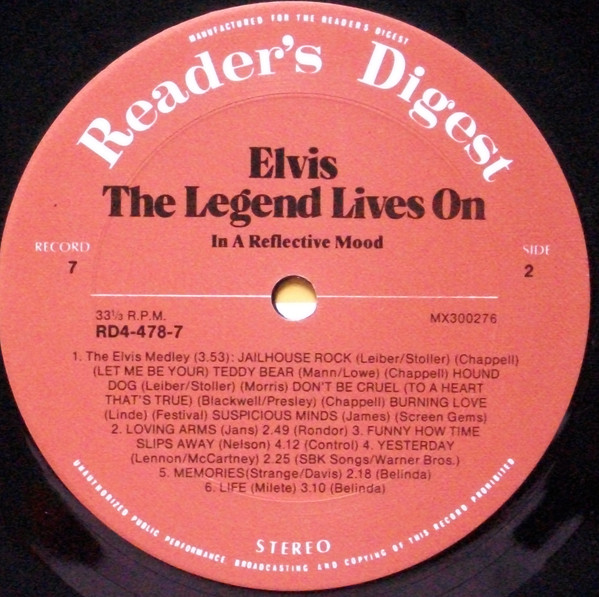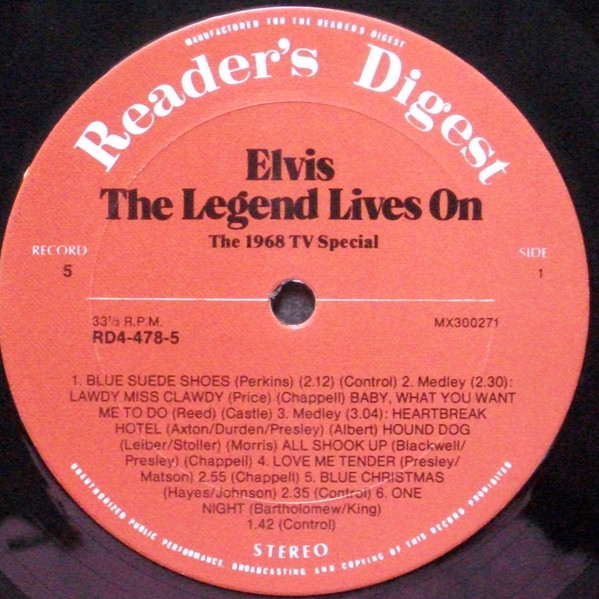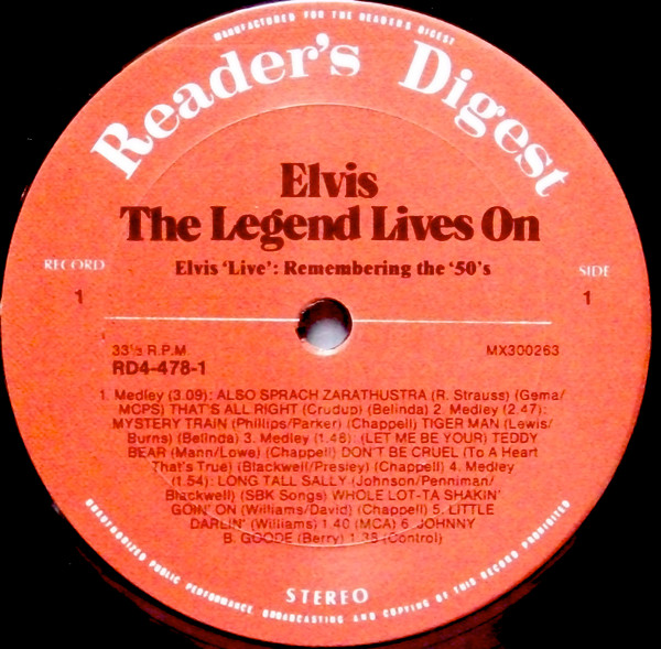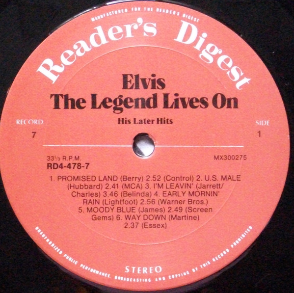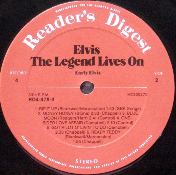 Elvis – The Legend Lives On Reader's Digest – RD4-478-1, Matrix / Runout (A side run-out Etched): |