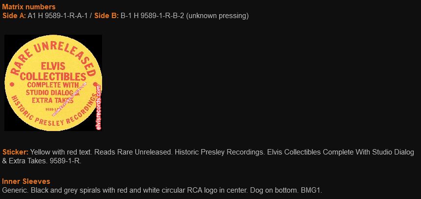 | Also there is the below release listed at Elvis Records Dot Com | |