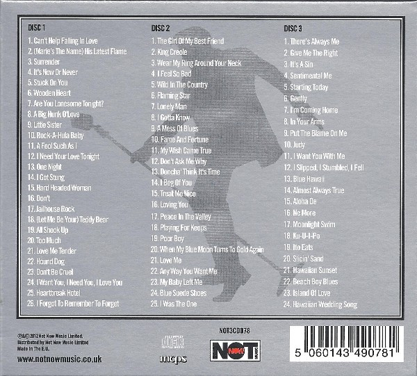 Collection Not Now Music – NOT3CD078 (CD) Not Now Music – NOT3LP195 (LP) Series: The Platinum Collection Format: 3 x CD, Compilation. Country: UK. Released: 2012 CD 1: 01: Can't Help Falling In Love 02: (Marie's The Name) His Latest Flame 03: Surrender 04: It's Now Or Never 05: Stuck On You 06: Wooden Heart 07: Are You Lonesome Tonight? 08: A Big Hunk O'Love 09: Little Sister 10: Rock-A-Hula Baby 11: A Fool Such As I 12: I Need Your Love Tonight 13: One Night 14: I Got Stung 15: Hard Headed Woman 16: Don't 17: Jailhouse Rock 18: (Let Me Be Your) Teddy Bear 19: All Shook Up 20: Too Much 21: Love Me Tender 22: Hound Dog 23: Don't Be Cruel 24: I Want You, I Need You, I Love You 25: Heartbreak Hotel 26: I Forgot To Remember To Forget CD