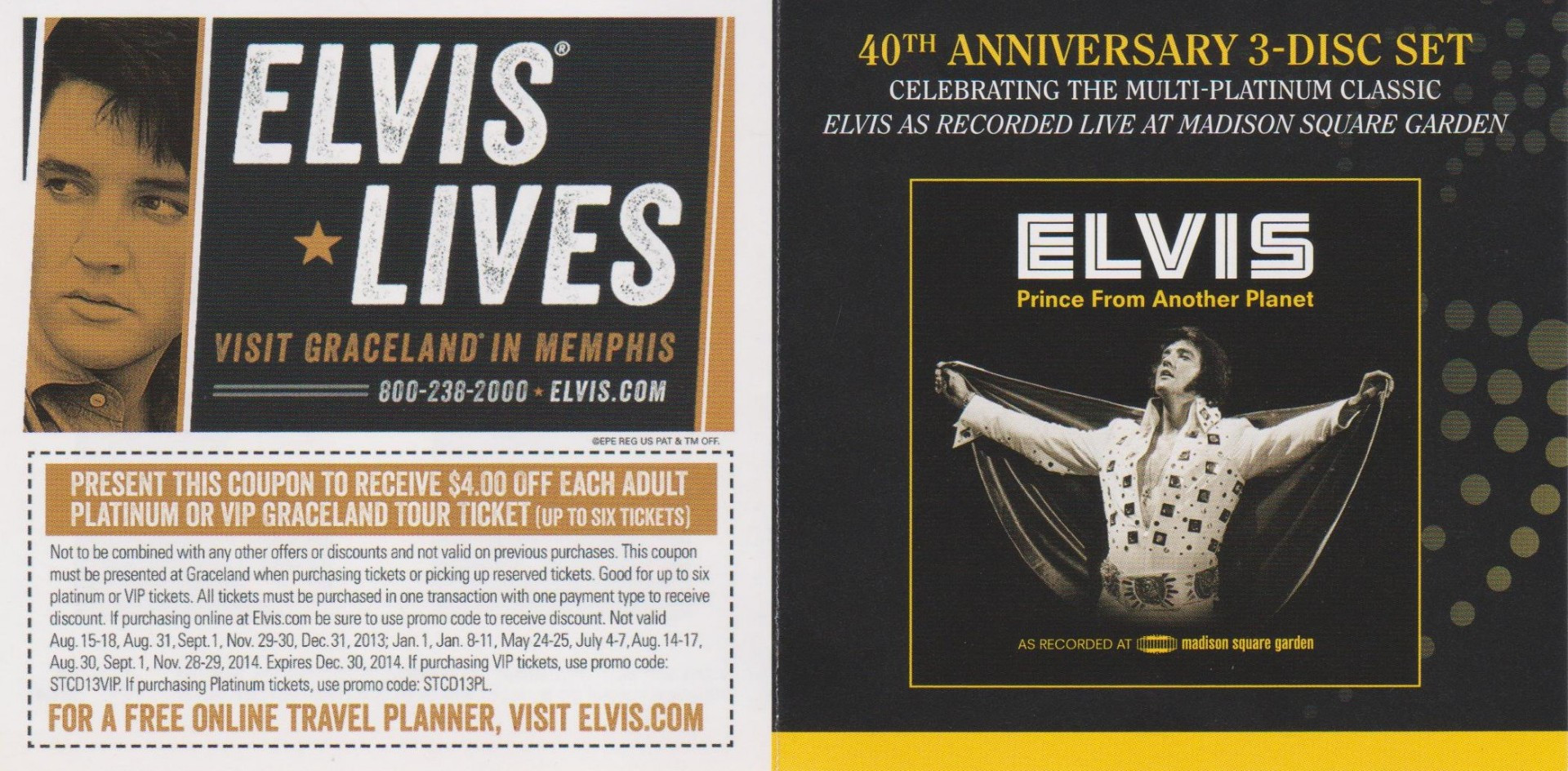 4 : Details : 2013 Release *NOTE* 2 LP set. Hype sticker states "40th Anniversary Of Elvis' Classic Recordings At Legendary Stax Studios". Insert Promoting 40th Anniversary 3-Disc Set & inside advert for 6 CD albums. Reverse is a coupon for money of tickets into Graceland. Records pressed by United Record Pressing often contain an etched "ⓤ" or "Ⓤ" (U in a circle) in the run-out groove area. |