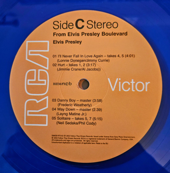 Front Cover : Photo of Elvis. Title across top. Catalogue