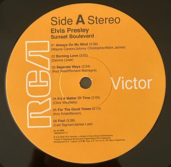 | Elvis Presley – Sunset Boulevard Label: RCA – 19802905521,
